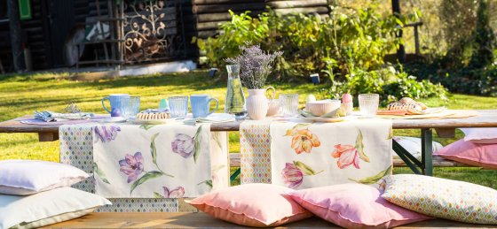 Wenn das Wintergrau zarten Frühlingstönen weicht, spüren wir die „Vernal Vibes“ – Frühlingsgefühle, die dem Alltag neue Leichtigkeit einhauchen. Von Hand gemalte Tulpen auf sanftem Cremefond treffen auf klare, geometrische Formen. Zusammen mit duftigen Kissenhüllen entsteht ein einladendes Potpourri voll sinnlicher Eleganz. Das variantenreiche Spiel aus pastelligen Kreidetönen auf feiner Baumwollstruktur ist der lang ersehnte Frischekick für die Sinne. Sobald die ersten Sonnenstrahlen darübertanzen, verwischen sie das Wintergrau zu heller Lebensfreude.